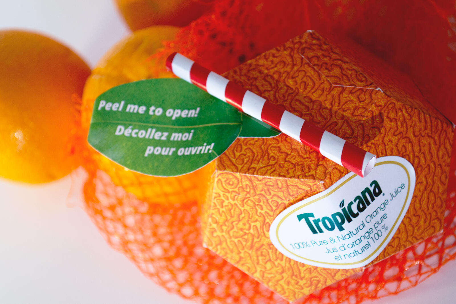 Amoug the things done improperly with the official Tropicana rebrand, consumers were the most upset about the removal of their iconic “straw-in-the-orange” symbol. It represents Tropicana’s brand value of quality as well as the pure, fresh product itself. The new packaging retains the Tropicana look and feel and reinforces their brand values through the use of this symbol. Not only will it allow viewers to clearly recognize the Tropicana brand before reading the text on the packaging, it will also function as a fun interactive package for the secondary target audience, children.