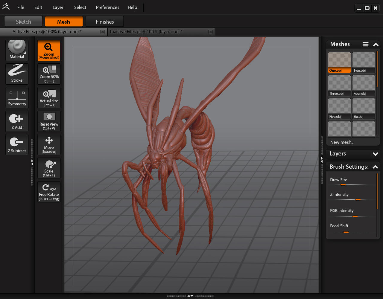 For our final "capstone" project in the Graphic Design Program at SLC, we were given the opportunity to pursue any project we wanted. I chose to reorganize the Zbrush application and redesign its UI. The main problems was with the organization of information and features. My preliminary research revealed that the software was unapproachable to most new users, and that the users who excelled in learning to navigate the software already had experience with 3D software such as Blender. To solve this, I took inventory of ALL the features and tools, and categorized them in simple terms.
