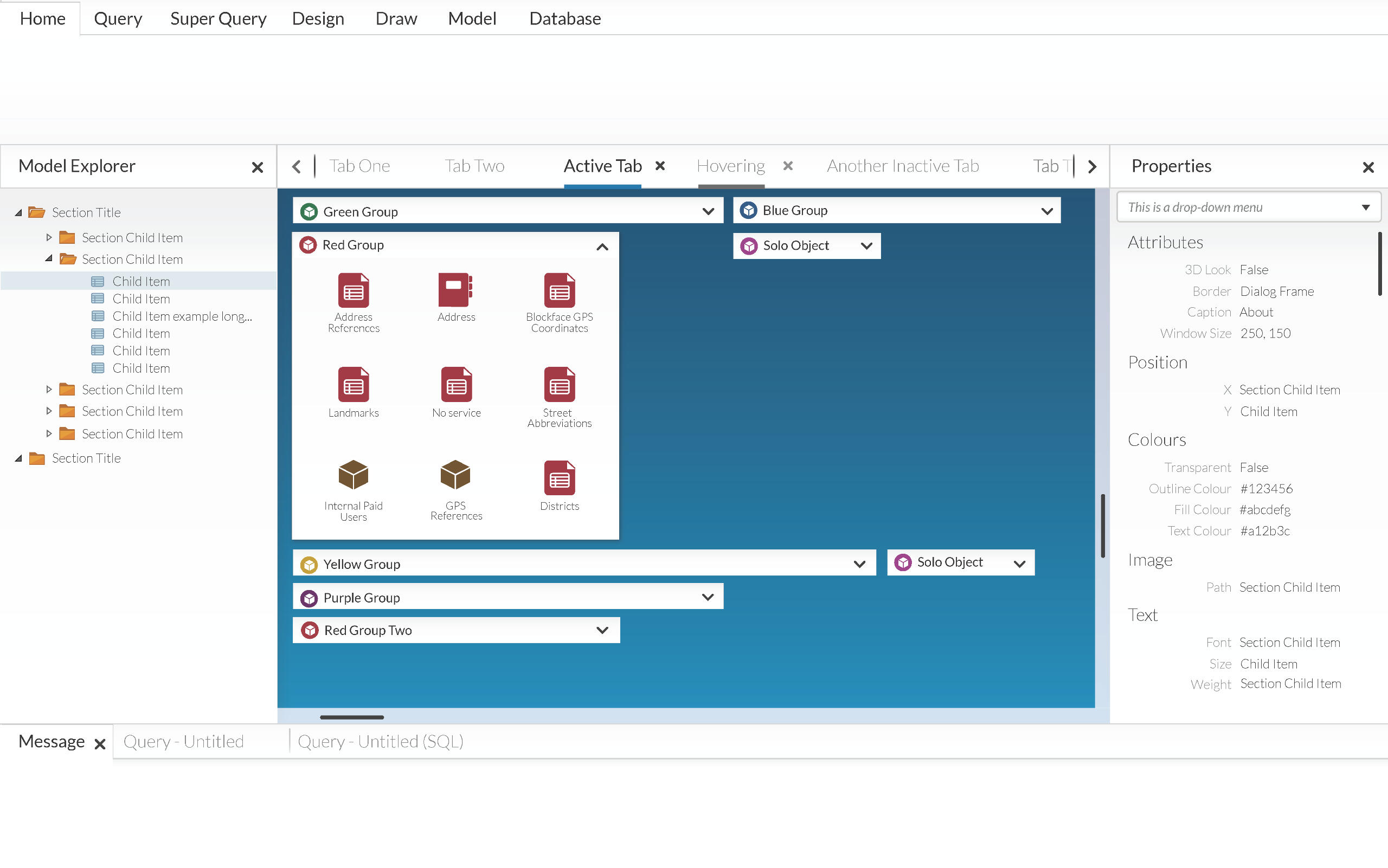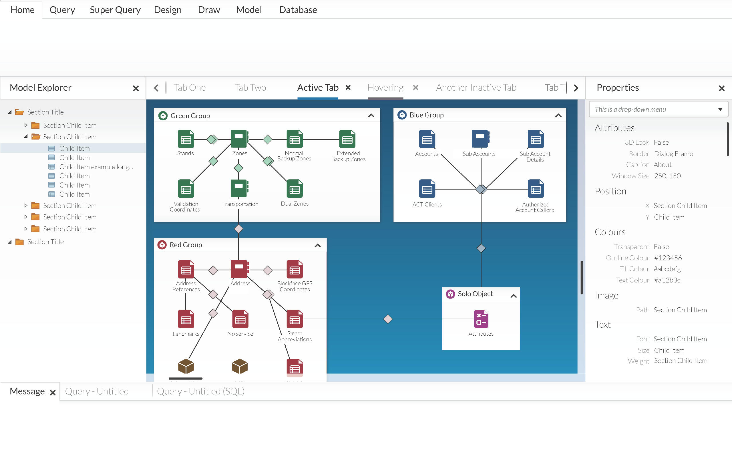 In the final year of Graphic Design at Saint Lawrence, we were given 3 week placement opportunity. I pursued work at OpenText, a Canadian software company that develops and sells enterprise information management software.The second project I worked on for OpenText was a user interface design for their internal Business Management software. This software essentially functioned as a visualization of an SQL database. It was also important to show the relationships between the software and how the programs interacted with each other.I was given a screenshot of the current business model to demonstrate the issues, and how complicated the visual interface can get without an organized approach. For privacy reasons, I only used generic labels for all the sample items in my own design.While designing the model, I made use of the design specification documents that I had been introduced to in the first project. My designs were created within specific design standards, dictated by these documents. This ensured that the end project would blend in seamlessly with the rest of OpenText's visual language.